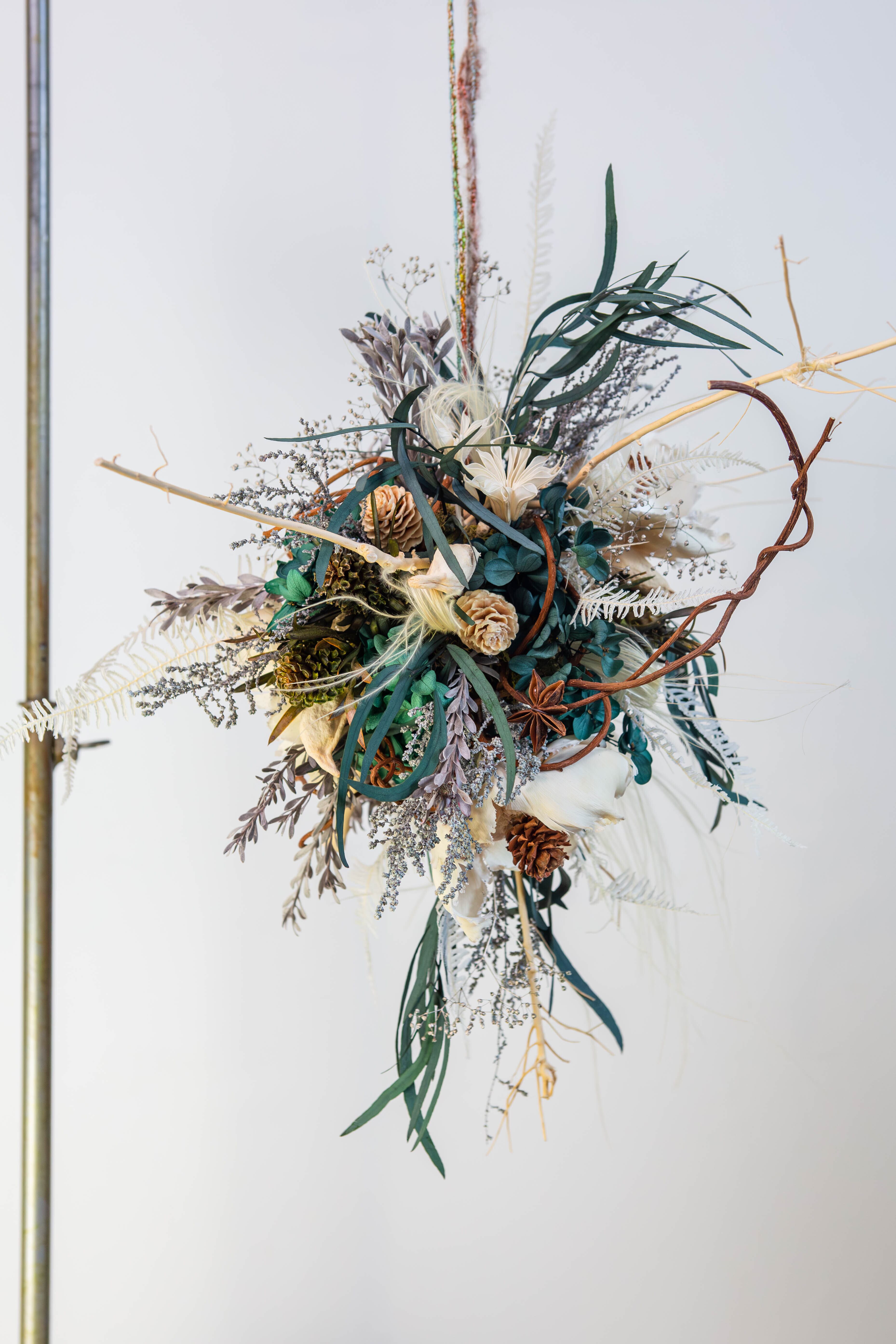 大きめサイズのフラワーボール、シャンデリア的に天井から吊るしたり