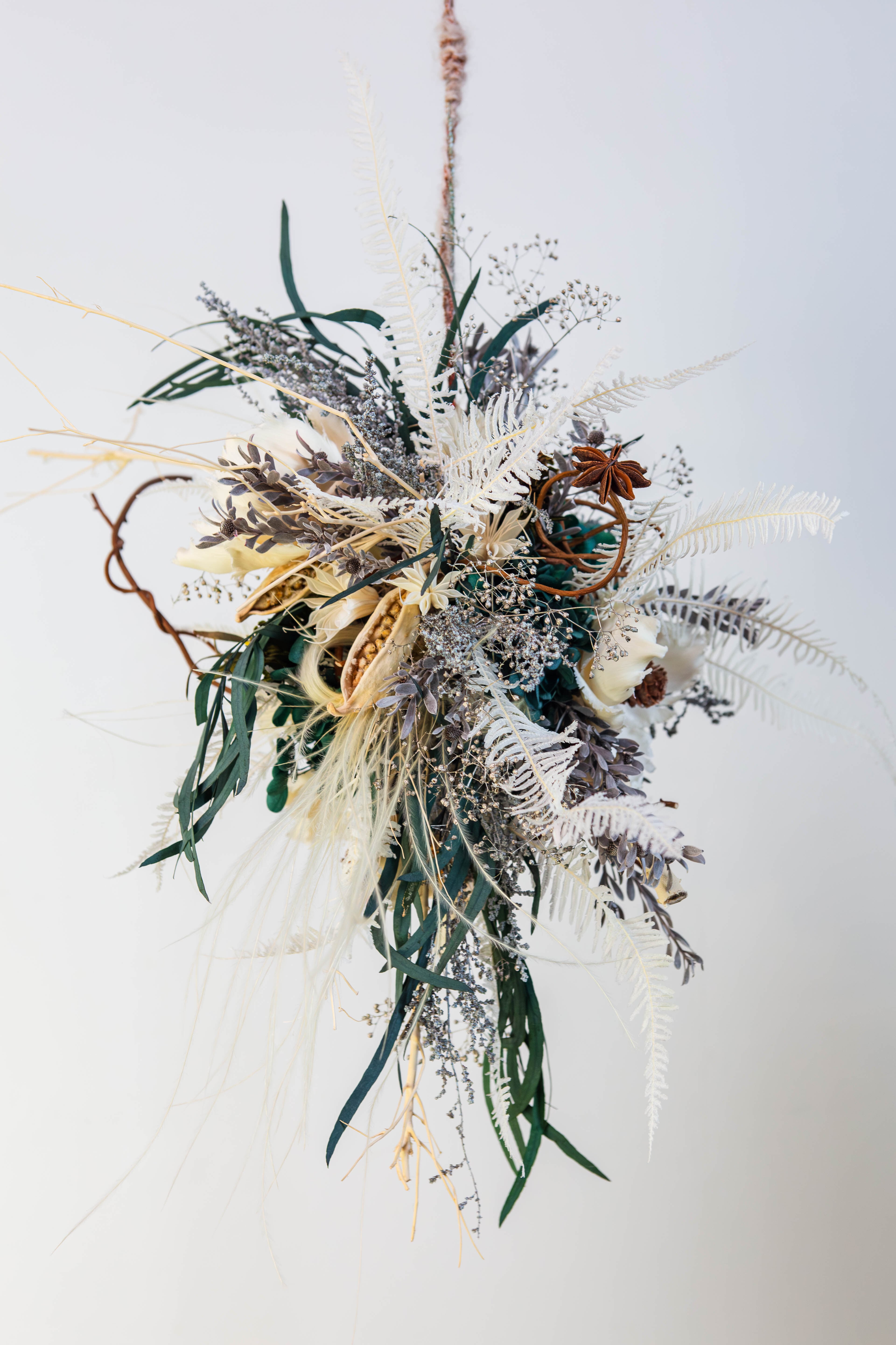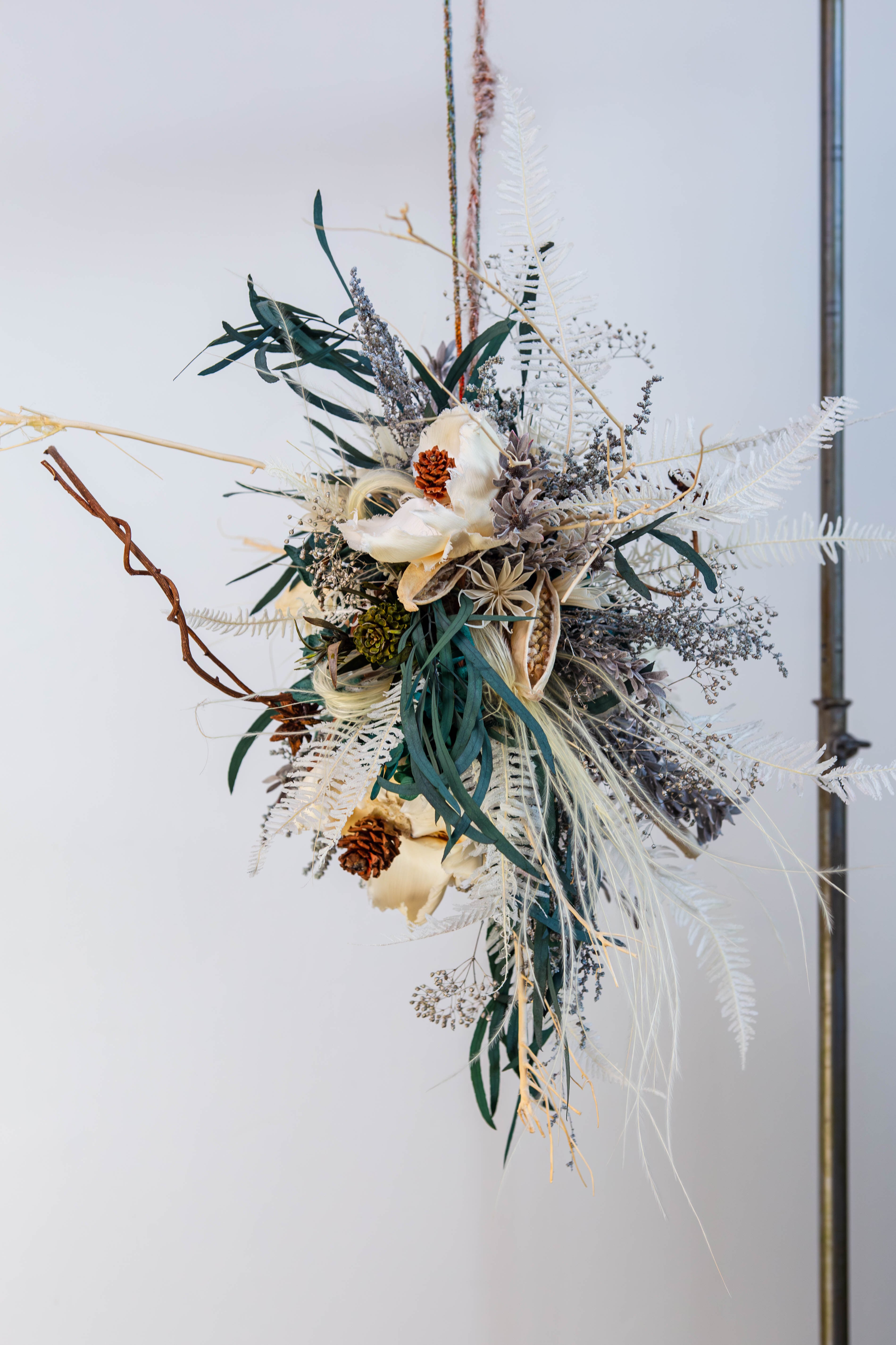 素材はドライフラワー・プリザーブドフラワー、色の変わりにくい花材を使用しております。