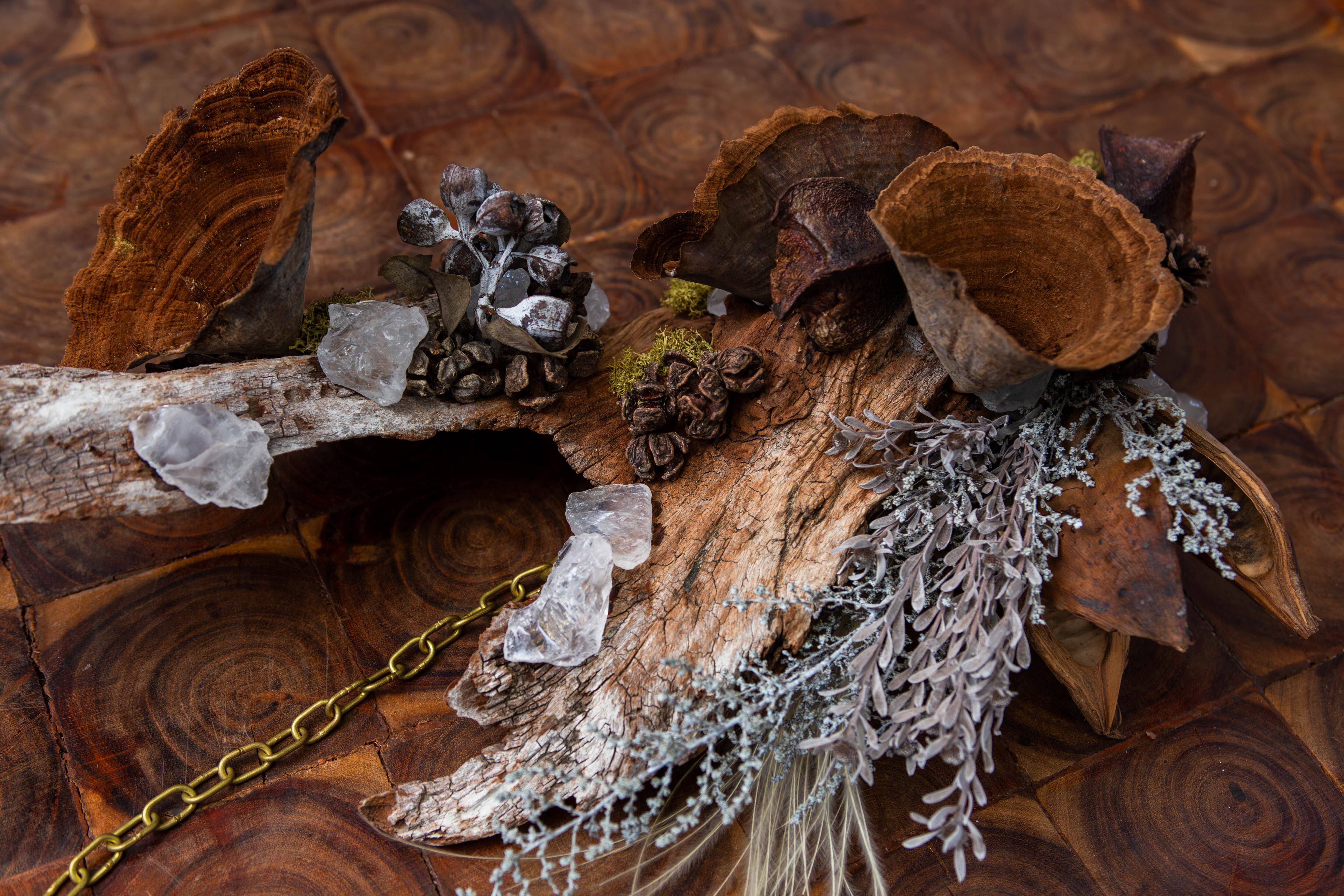 ジョウゴダケ/他ドライフラワー、木片、天然石、ソロロカ/他木の実