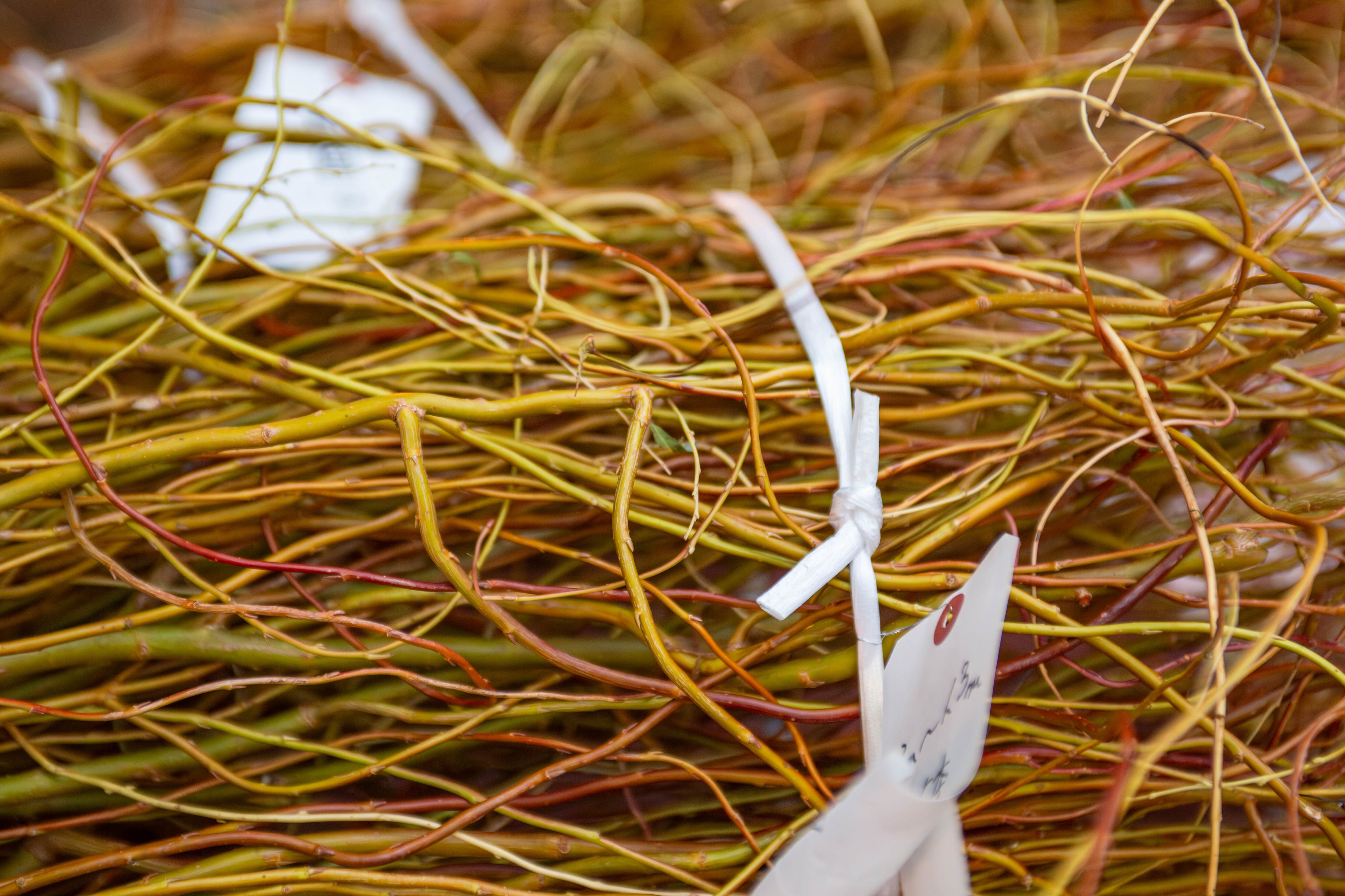クリスマスリースに混ぜてお洒落な雲龍柳、使いやすい長さに切り分けてお入れいたします。
