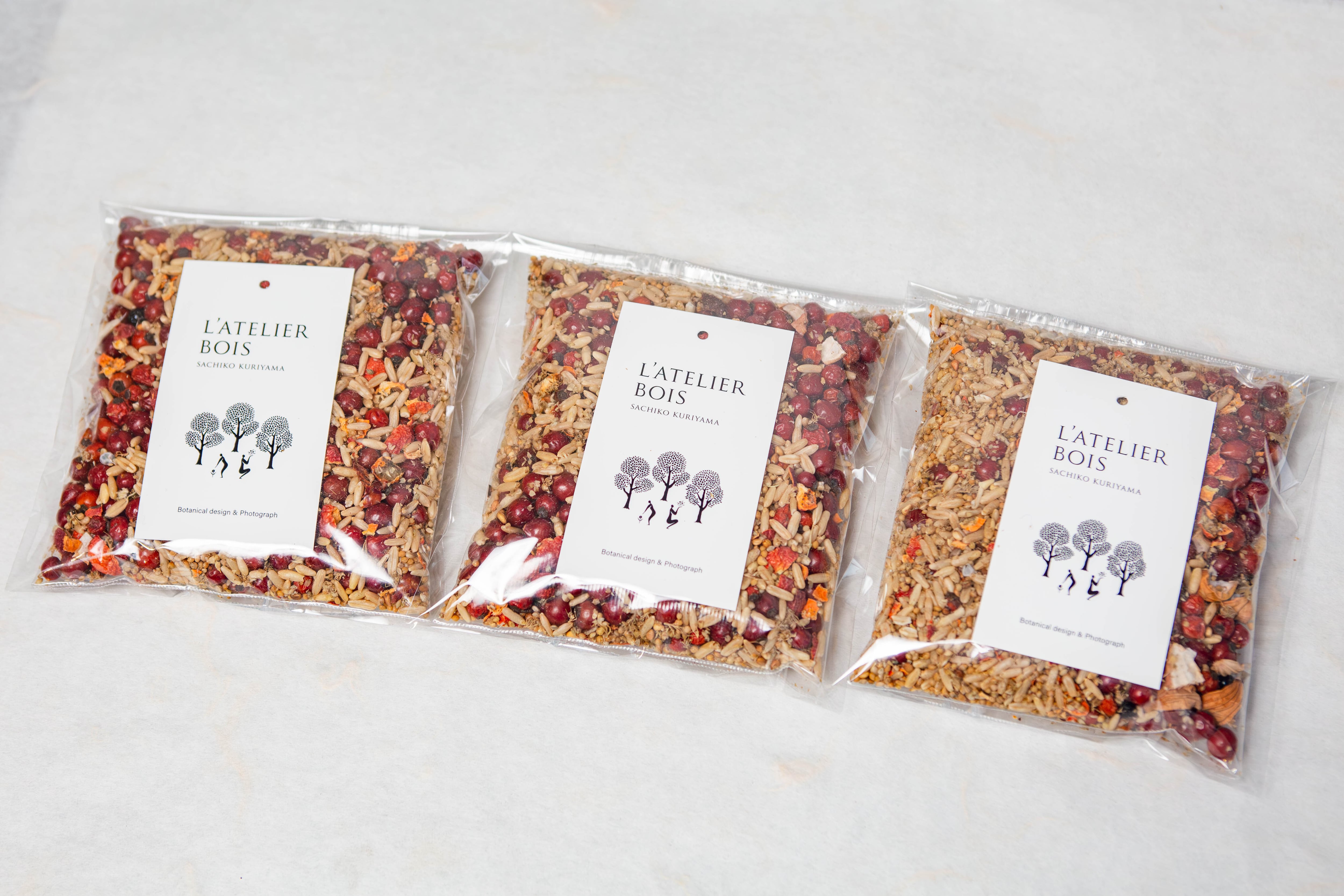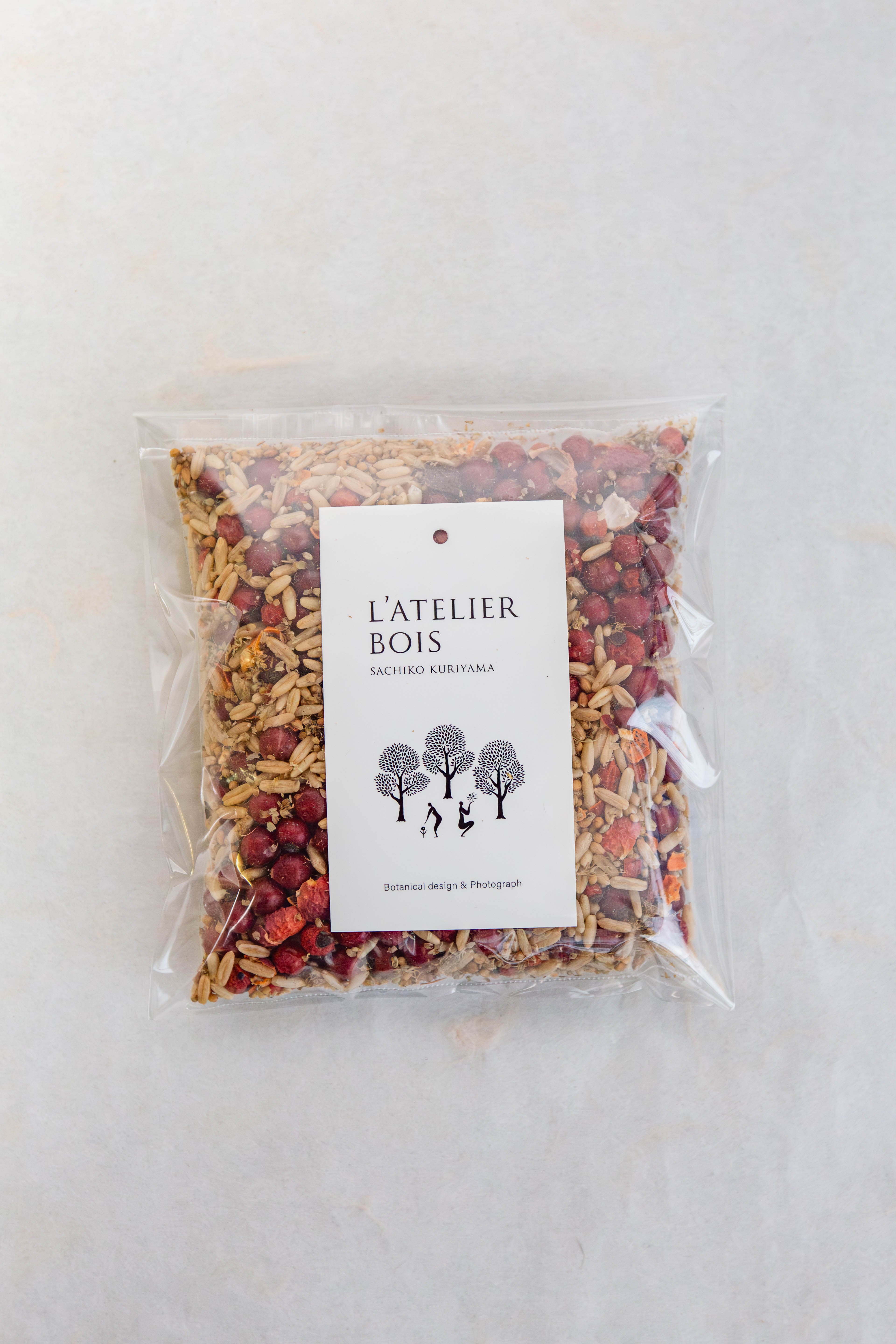 <材料> 野薔薇の実、薔薇の実、ヒオウギの実、月桃、燕麦、粟